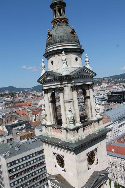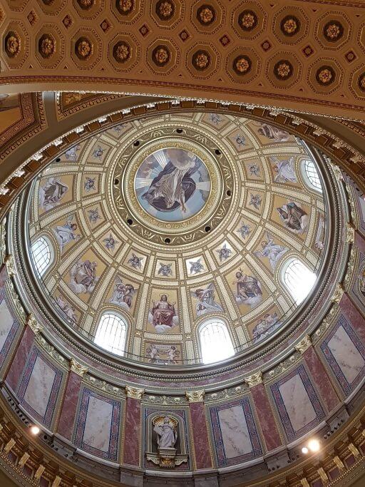 Nous sommes entrés dans la basilique au moment de la messe du 15 août : le bâtiment n’était pas traversé que par des touristes mais résonnait de vie. Elle a été construite en juste 54 ans ! Son dôme culmine à la même hauteur que celui du Parlement : 96 mètres. Ce nombre est symbolique pour les Hongrois : il rappelle l’année 896 où les fondations de la Hongrie furent posées.