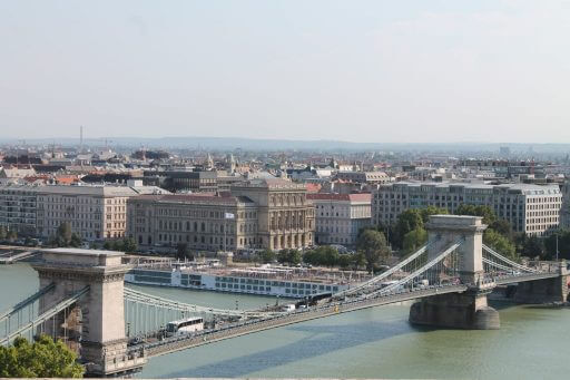 Budapest est séparé en deux par le Danube. Elle a donc du construire des ponts et c’est un atout charme indéniable. Belvaros est rattaché à Buda par 3 ponts. Le pont des chaines (Széchenyi Lanchid) a fier allure, il débouche sur Széchenyi ter où se trouve le palais Gresham (reconverti en hôtel 5 étoiles), un magnifique bâtiment imposant (comme beaucoup à Budapest).