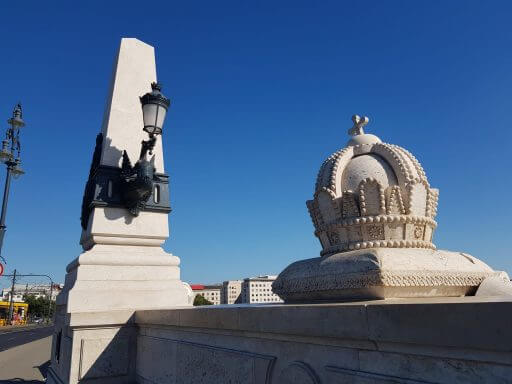 On y découvre aussi la couronne de Saint Étienne, en référence à Etienne, 1er roi de Hongrie. Cette couronne royale, accompagnée par le sceptre, est protégée en permanence par deux gardes. Cette couronne a eu une histoire rocambolesque dont elle garde la trace : elle a été emportée par les américains en 1945 pour échapper aux mains des russes et conservée à Fort Knox. Il y aurait eu un accident qui a eu comme conséquence de faire pencher la croix qui domine la couronne, un peu comme la tour de Pise ! Lorsque vous vous baladez sur le pont Marguerite (Margit Hid), les rambardes sont décorées de cette couronne royale avec la croix bien penchée. Jusqu’au bout du détail !