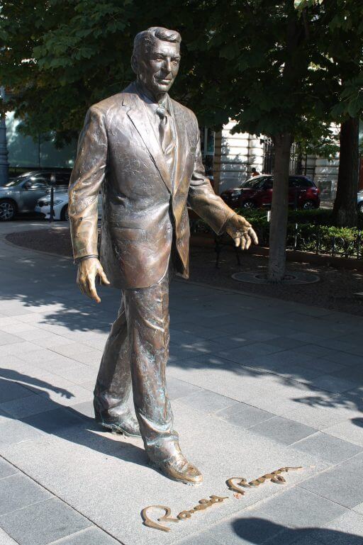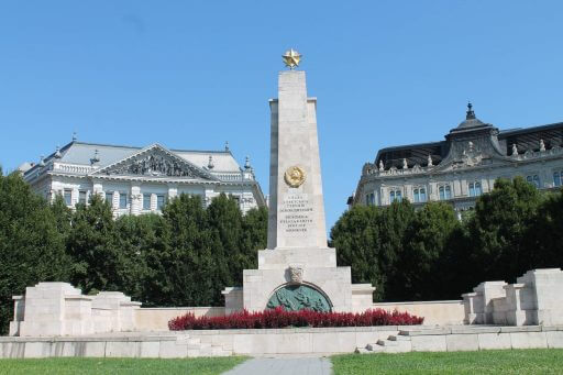 - au cœur de la place, le monument aux héros soviétiques libérateurs de la Hongrie. C’est une des rares statues de l’époque soviétique qui n’ait pas été déboulonnée. Elle côtoie la statue de Ronald Reagan.