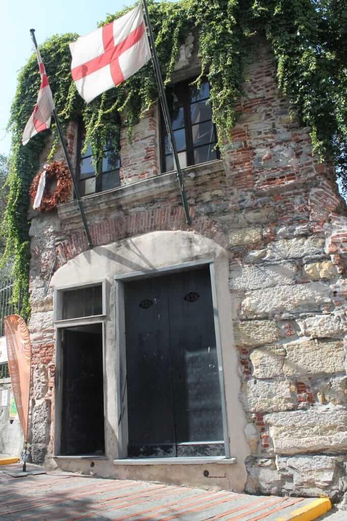 Alors elle ne paie pas du tout de mine ! Même, nous avons mis un moment avant de la trouver. Cherchez les deux grands drapeaux posés devant la porte d’entrée. Et ce qui surprend, c’est la petitesse des pièces, de la hauteur sous plafond. On ne nage pas dans le grand luxe ici, c’est certain !