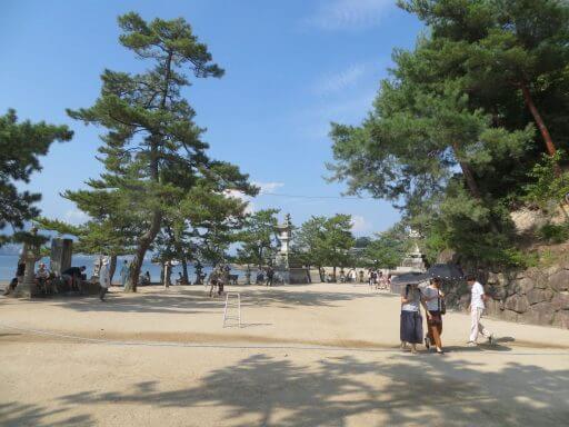 Dès notre arrivée, nos yeux se sont portés sur le sanctuaire Itsukushima et plus particulièrement sur le grand tori majestueux qui flotte dans l’eau. Nous sommes arrivés à marée basse et il dégageait une puissance et une beauté impressionnante. Mais à marée haute, il parait que c’est absolument magique.