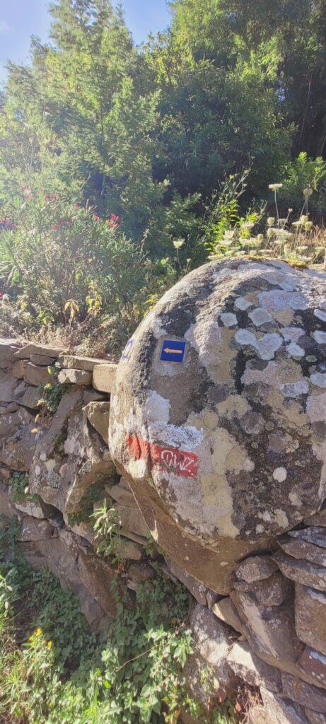 Le chemin se rétrécit mais reste très accessible. Vous croiserez une ou deux maisons sur votre parcours et les bandes rouges et blanches sur un gros rocher pour vous indiquer que vous êtes au bon endroit.