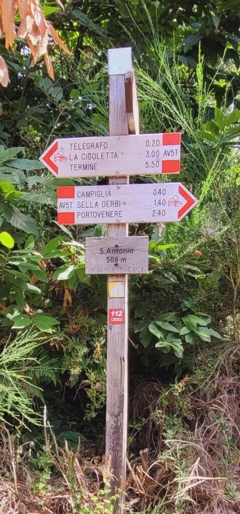 Depuis le lieu dit « Antonio », vous trouvez des indications horaires pour rallier Porto Venere. Suivez-les !